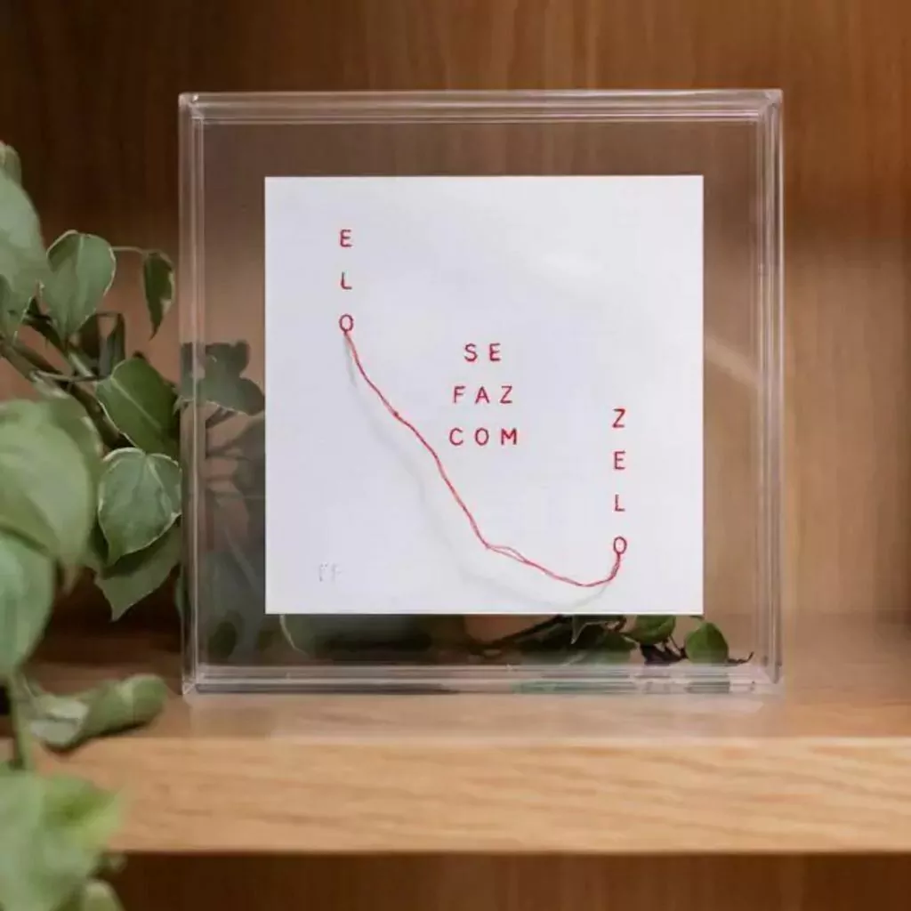 Quadro Poesia " Elo se faz com zelo" da artista Thais Di Freitas- com moldura em acrilico transparente. Perfeito para decorar uma estante ou pendurar em um cantinho especial.